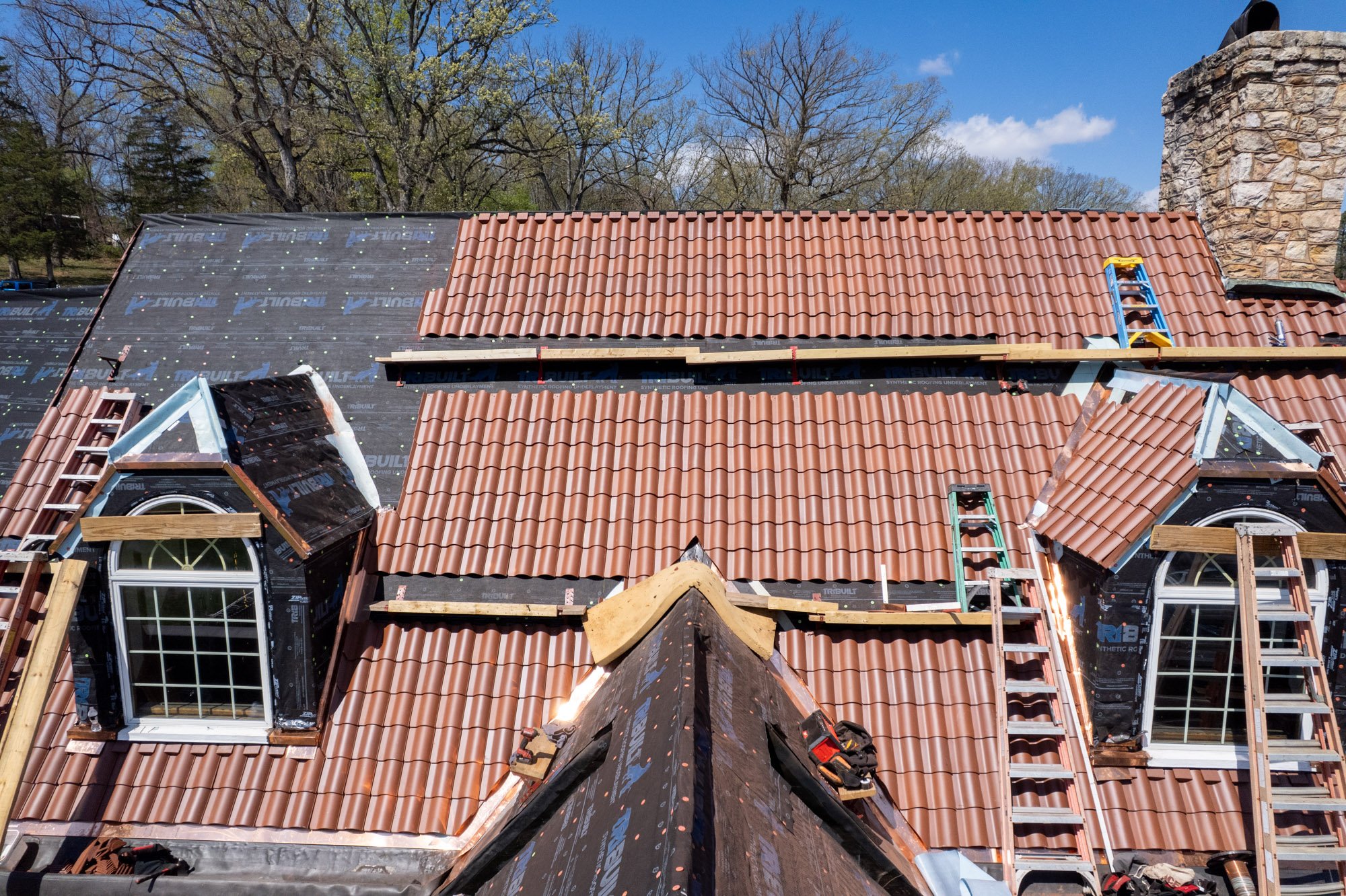 We’re restoring the roof system from the deck up, then reinstalling the clay tile with the alignment and spacing tile systems require.