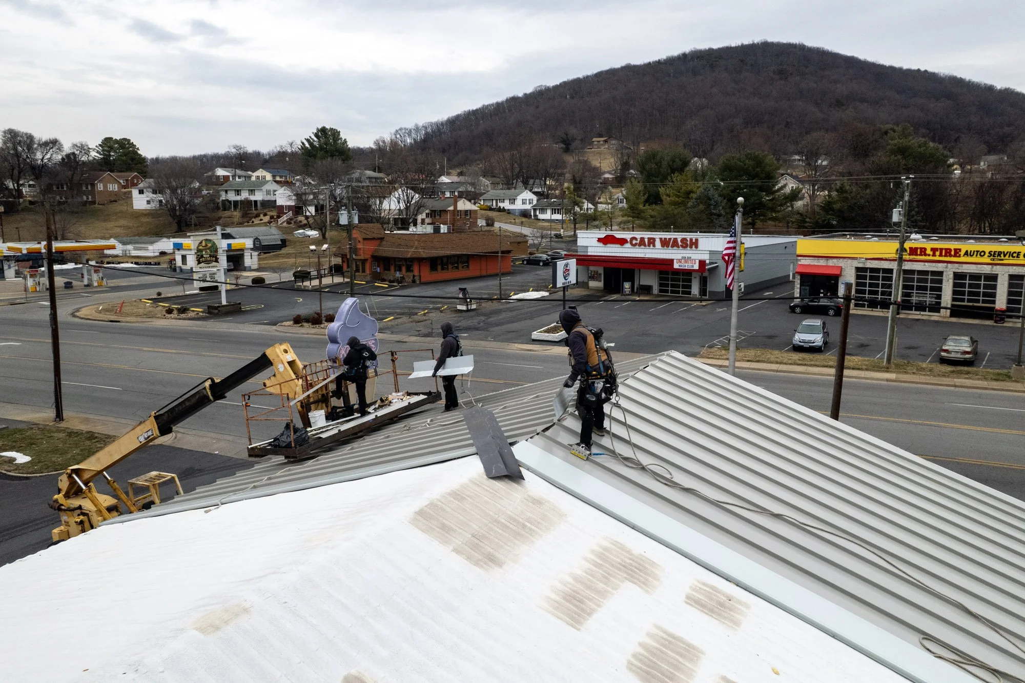 Kline’s Dairy Bar in Staunton, Virginia, needed a long-term solution for an aging metal roof that had developed persistent leaks over time. Our team is replacing the original screw-through metal roof with a 22-gauge, 2-inch rib mechanically seamed metal panel system designed for stronger weather protection, long-term durability, and improved performance.