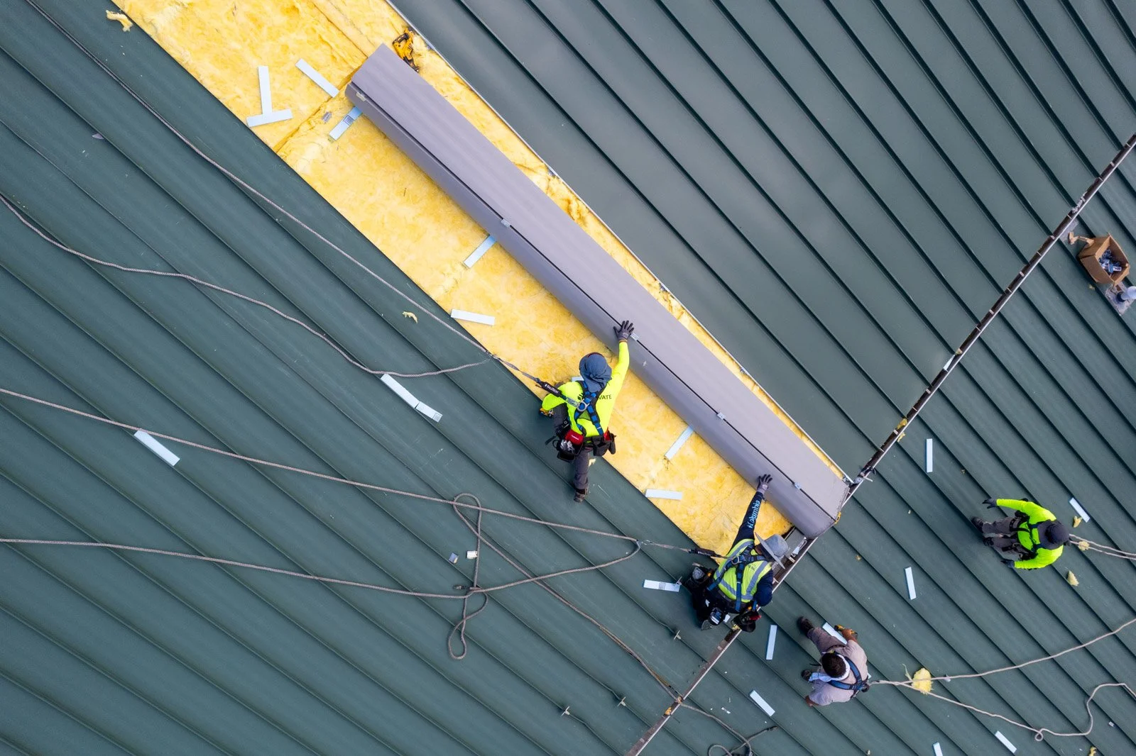 Every project presents us with a challenge that our team is eager to solve. On this project, the roof’s structural beams were spaced four feet apart—double the width of a more typical two-foot spacing—which required us to adapt our safety protocols and installation process. Once you add in the variable weather we've experienced in the valley and a need to keep every daily transition weather-tight, attention to detail is a must. Each evening, we made sure the roof was sealed up, ready to withstand whatever weather came overnight.
