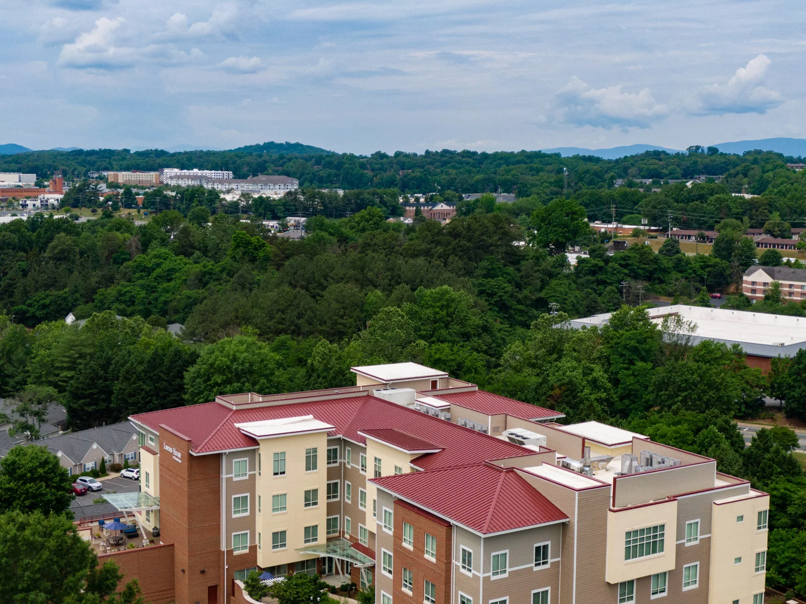 Linden House at Branchlands was an assisted living expansion for Branchlands Senior Living Community. We installed 9,500 sq. ft fully adhered .060 mil white TPO; 21,000 sq. ft of .040 aluminum ATAS dutch seam panel; 1,800 sq. ft of green roof and 1,000 sq. ft of porcelain paver & pedal system.